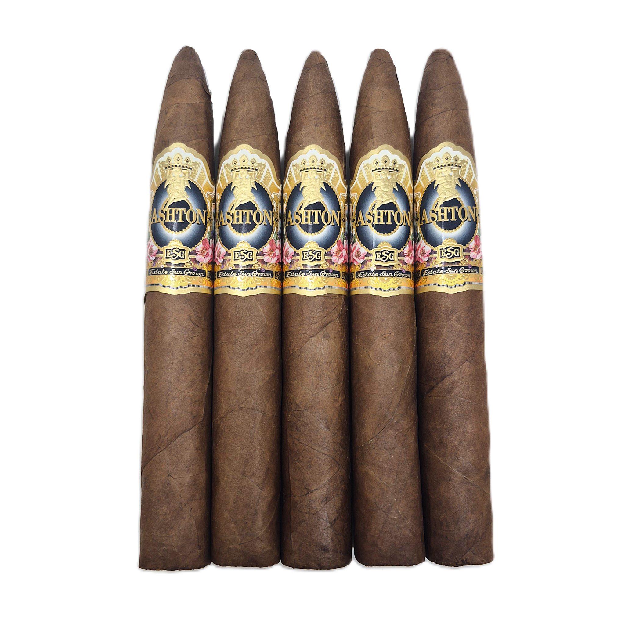 Launched in 1985, Ashton became among the most revered premium cigar brands in the world. Crafted at the legendary Tabacalera A. Fuente factory in the Dominican Republic, Ashton Estate Sun Grown (ESG) uses some of the Fuente family’s oldest tobaccos. This all-Dominican blend is a top-rated masterpiece.
